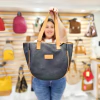 - Manijas para llevar a la mano o codo y correa regulable y desmontable para llevar, simple o cruzada, a modo de bandolera.