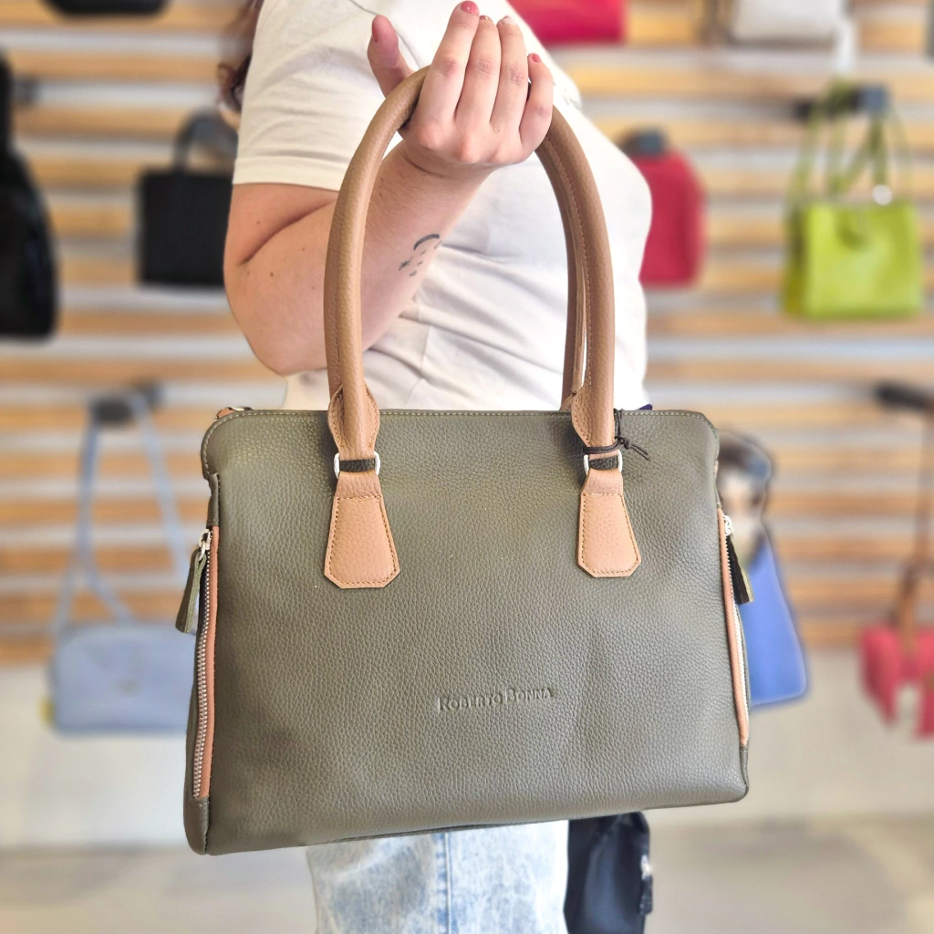 - Interior con cierre, bolsillo interno, bolsilo para celular y división interna con cierre.